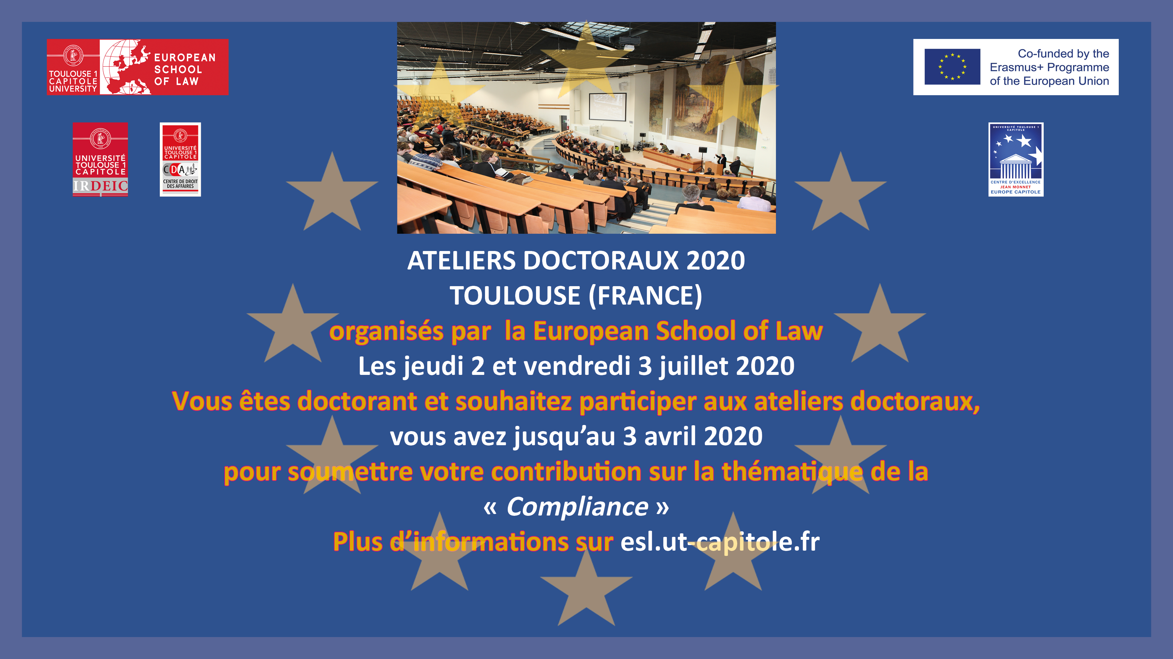 Applications must be sent by e-mail before April 3, 2020 to the following address: esl@ut-capitole.fr. The Scientific Committee will respond individually to each application, concerning its acceptance or non-acceptance, by e-mail.